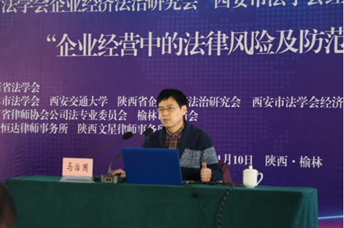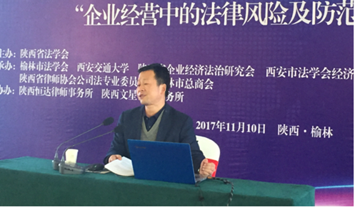 陕西恒达律师事务所主任陈贞学、榆林市中级人民法院民二庭副庭长李永旺、陕西能源集团政策法规室副主任齐渭波、北京炜衡律师事务所西安分所主任、陕西律协公司法专委会主任王小涛分别做了题为“企业经营中的法律风险及防范”、从审判视角看新时代企业用工的法律问题”、“金税三期时代的企业税务风险管理与应对”、“公司治理权力博弈与实证案例分析”的报告。 在四位嘉宾做完专题报告之后,西安市法学会经济法学研究会副会长、西北政法大学行政正规nba押注网站副院长姬亚平教授、陕西省法学会企业经济法治研究会副会长、正规nba押注网站张冰副教授进行了精彩点评。