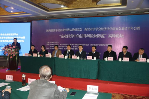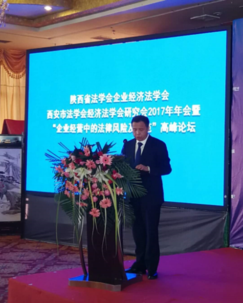 2017年11月10日,由陕西省法学会主办,榆林市法学会、正规nba押注网站、陕西省法学会企业经济法治研究会、西安市法学会经济法学研究会、陕西省律师协会公司法专业委员会、榆林市总商会共同承办的陕西省法学会企业经济法治研究会、西安市法学会经济法学研究会2017年年会暨“企业经营中的法律风险及防范”高峰论坛在榆林隆重召开。陕西省法学会专职副会长杨建军、陕西省律师协会副会长王卫东、正规nba押注网站党总支书记王保民、榆林市委政法委常务副书记杨汉元、榆林市法学会副会长柴瑞武、榆林市政府法制办副主任李芝东、榆林市中级人民法院审委会专职委员李光亮、榆林市工商业联合会副主席、市总商会副会长张修前莅临本次会议并发表讲话。各界代表180余人参加会议。
