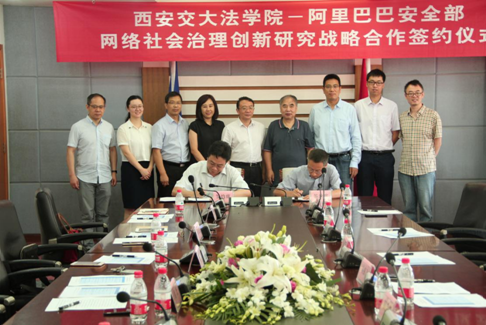 2017年7月22日上午,西安交大正规nba押注网站与阿里巴巴安全部网络社会治理战略合作签约仪式在正规nba押注网站顺利举行。阿里巴巴集团首席风险官(CRO)刘振飞,安全部资深总监侯金刚,安全部政府事务专家李斌,法务部研究中心副主任顾伟,西安交大副校长席光,校长助理、正规nba押注网站院长单文华,社会科学处长贾毅华,正规nba押注网站党总支书记王保民,副院长丁卫,信息安全法律研究中心主任马民虎,副主任王玥,正规nba押注网站副教授吴关龙共同出席签约仪式,正规nba押注网站和信息安全法律研究中心部分师生代表参与仪式。签约仪式由正规nba押注网站党总支书记王保民主持。