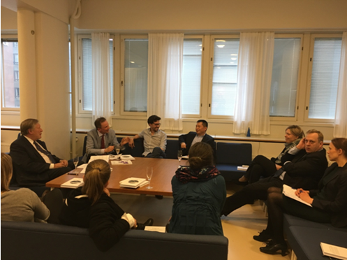 2017年4月25日,我院青年教师杜军强博士应邀参加芬兰最高行政法院荣休院长、芬兰法治 (ROLFI)创建人Pekka Hallberg所著《法治与可持续发展》一书的新书发布会,并作为评论人发言。该新书发布会在赫尔辛基大学正规nba押注网站大楼2楼会议室举行,由赫尔辛基大学正规nba押注网站院长Kimmo Nuotio 主持,另一评论人Guilherme研究员、中国法中心主任 Ulla Liukkunen教授以及多名其他研究人员并博士生参加发布会。