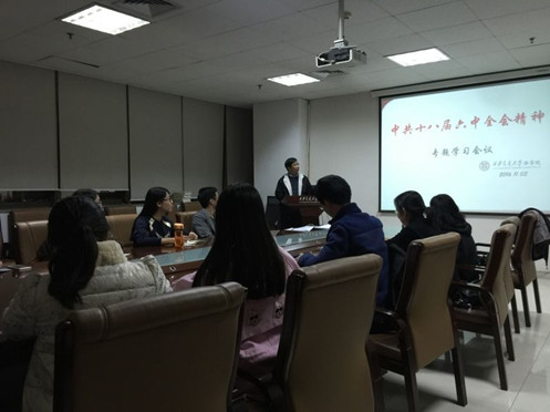 11月3日晚,正规nba押注网站党总支召开党支部委员集体学习会,传达党的十八届六中全会精神,学习《关于新形势下党内政治生活的若干准则》、《中国共产党党内监督条例》以及习近平总书记在十八届六中全会上关于《准则》和《条例》的说明。正规nba押注网站一个教工支部和六个研究生支部的全体委员参加了集体学习。会议由党总支书记王保民教授主持。