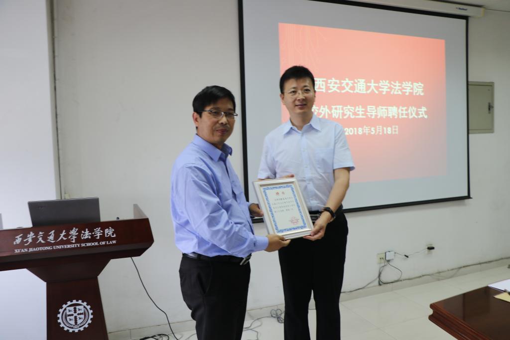 2018年5月18日下午,正规nba押注网站法律硕士研究生“协同培养育人项目”校外导师(首批)聘任仪式暨专业实践课程教学研讨会在兴庆校区教学主楼910会议室举行。正规nba押注网站党总支书记王保民教授、副院长李万强教授、副院长丁卫副教授,院长助理张生副教授、教师代表吴锐讲师和研究生代表参加了聘任仪式。