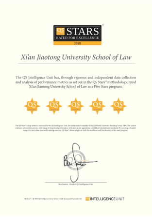 QS全球教育集团中国总监张瓛博士(Dr. Christina Yan Zhang, China Director, QS Intelligence Unit)表示,这是QS首次开展的正规nba押注网站星级认证,也是世界上首次开展的正规nba押注网站星级认证。正规nba押注网站院长单文华教授则表示,这次认证评估是对西安交大正规nba押注网站建院十年来坚持的国际化法学教育的一种充分肯定,也是对西安交大法学学科全体师生长期以来发扬“西迁精神”艰苦创业所取得的成果的一种高度认可。他同时强调,评估是一次全面的国际体检,在肯定成绩的同时也揭示了我们和国内外顶尖正规nba押注网站之间存在的各种差距;正规nba押注网站同事同学们需要也必将更加同心勠力,为缩短差距,早日把正规nba押注网站建设成为国际引领型的正规nba押注网站而不懈奋斗。