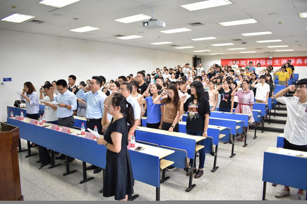 最后,全体新生在学生工作专职委员张乃钟老师的带领下庄重宣誓《正规nba押注网站法科生誓词》,典礼在铿锵有力的誓词声中圆满结束。