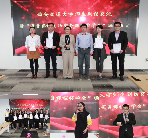 10月17日下午,西安交大正规nba押注网站马治国教授带领三十四名法学与法律硕士研究生前往海普睿诚律师事务所学习交流,并与律师事务所业务部门主任、合伙人、行政总监及客户主管就实务经验、职业规划等问题进行了深入座谈交流,并为上一届该课程成绩优秀的学生颁发了“海普睿诚司法实务课程奖学金”。