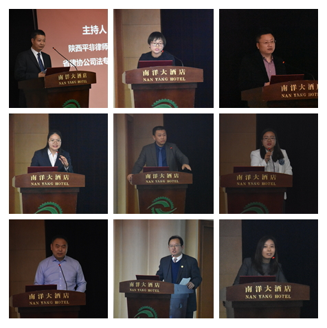 随后,大会进入了“群英会”环节。本环节由陕西标新律师事务所公司专业委员会副秘书长张晗,陕西永嘉信律师事务所合伙人、陕西省律协金融证券专委会委员张璠,陕西平非律师事务所副主任、陕西省律协公司法专业委员会副主任张权,陕西云德律师事务所公司法律顾问事务部首席律师、陕西省律协公司法专业委员会副秘书长杨彩虹依次主持,由张璠、岳玲利、田少荣、王玉苹、勾晓强、任婧、齐精智、刘醒、任永平、崔树森等十名律师对大西安建设中企业创新法律问题进行了深入的探讨,其所涉及的议题丰富,各位发言人见解独到,听众反馈积极,会议气氛热烈,也为今后的学术研究和司法实务开辟了新的视野。最后延安大学政正规nba押注网站副院长刘向林,陕西省企业经济法治研究会副会长、正规nba押注网站法学副教授张冰,陕西德伦律所主任梁志新,陕西德伦律师事务所律师、西安市律协公司法专业委员会委员韩小春对十名律师的报告进行了精彩纷呈的点评。