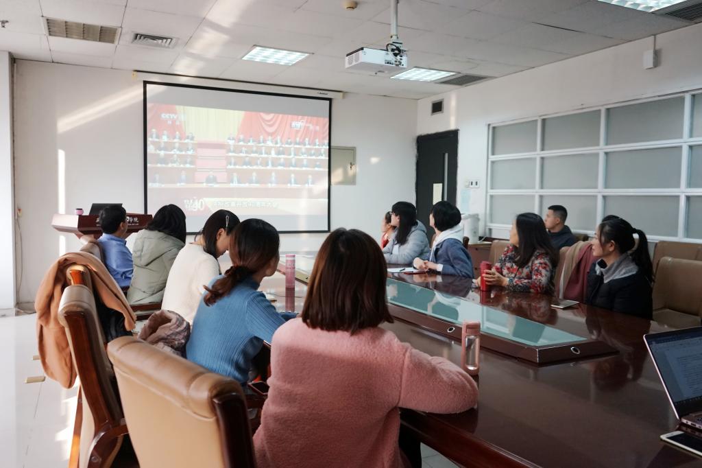 2018年12月18日上午,中共中央、国务院召开大会,隆重庆祝改革开放40周年。正规nba押注网站党总支组织教师党员、学生党员干部在主E-910会议室集中观看大会直播,认真聆听习近平总书记在大会上的重要讲话。