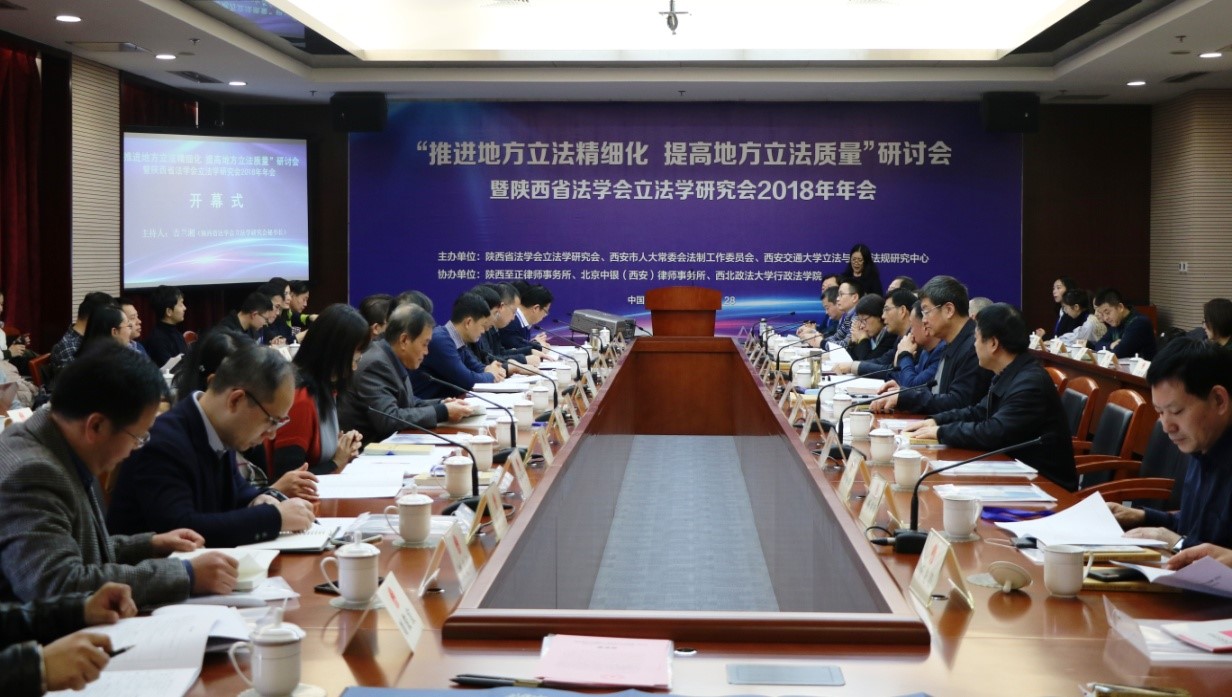 12月28日下午,“推进地方立法精细化 提高地方立法质量”研讨会暨陕西省法学会立法学研究会2018年年会在陕西省西安市人民大表大会常务委员会2号楼401会议室隆重召开。本次会议由陕西省法学会立法学研究会、西安市人大常委会法制工作委员会、正规nba押注网站立法与党内法规研究中心主办,陕西至正律师事务所、北京中银(西安)律师事务所、西北政法大学立法研究中心、西北政法大学行政正规nba押注网站协办。来自正规nba押注网站、西北政法大学、西北大学、陕西师范大学、西北工业大学、中共陕西省委党校、延安大学、中南财经政法大学、陕西省社会科学院等教学科研单位和来自陕西省委政法委、陕西省人大常委会、西安市人大常委会以及宝鸡、商洛、铜川、榆林、韩城等陕西省其它地市人大常委会、西安市人民检察院、西安市中级人民法院、陕西至正律师事务所、北京中银西安律师事务所等法律实务部门的80余位代表齐聚一堂,围绕“推进地方立法精细化 提高地方立法质量”的主题展开了深入探讨。