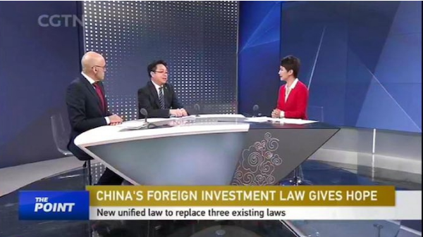 为回应国际关切,中国国际电视台(CGTN)邀请西安交大正规nba押注网站院长、最高人民法院国际商事专家委员会专家委员、中国国际经济法学会副会长单文华教授以及美国雷曼律师事务所主任律师Edward Lehman做客其王牌国际新闻评论栏目“欣视点(The Point with Liu Xin)”现场直播,就中国最新的统一外商投资法草案及其与中美贸易战的关系进行专家解读。